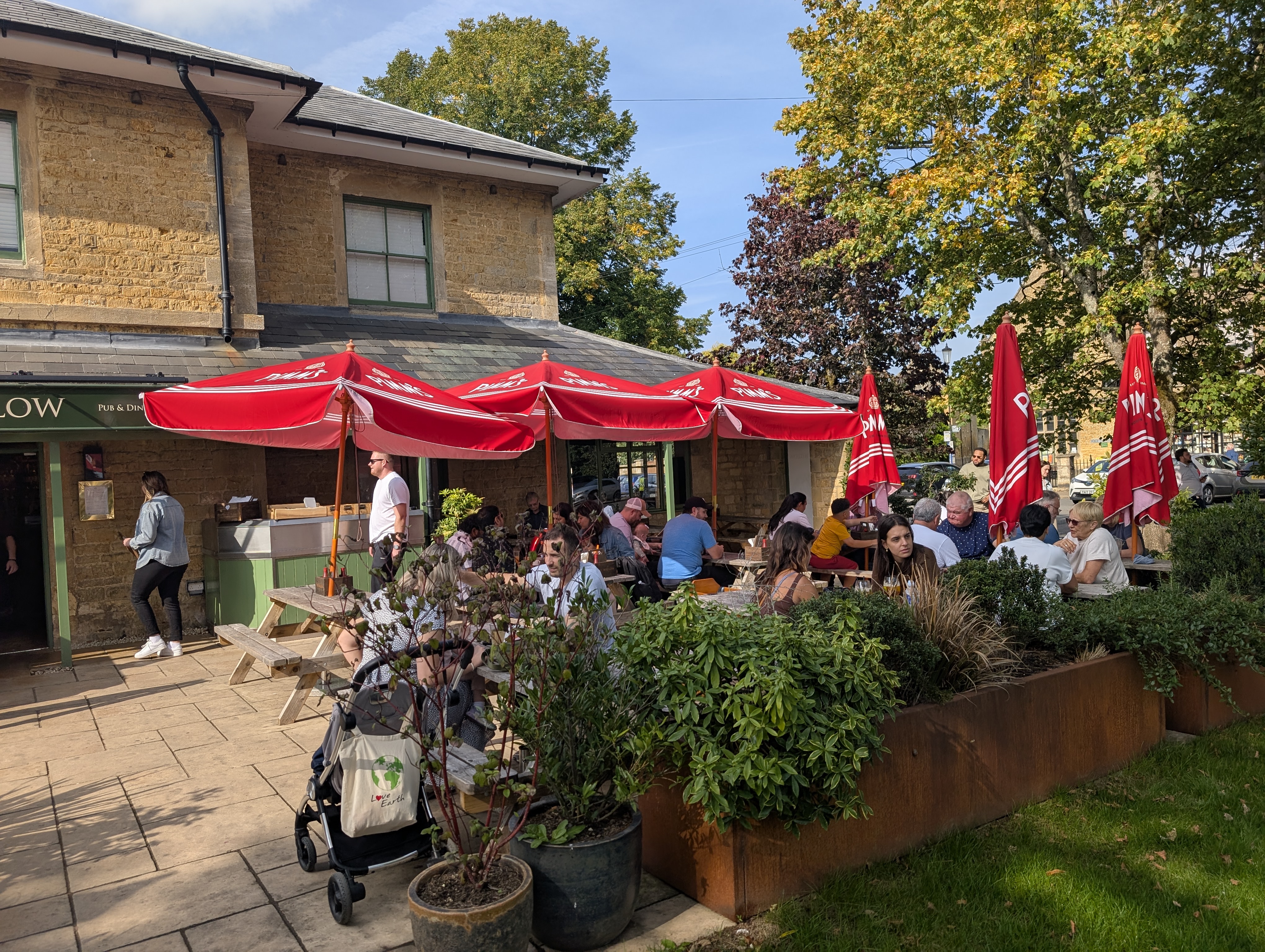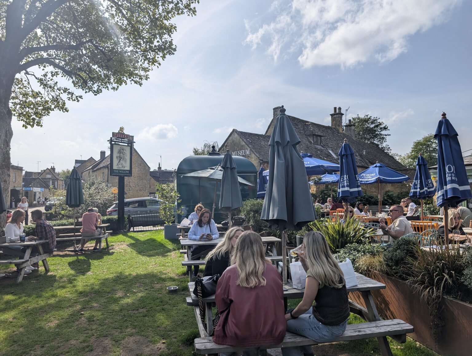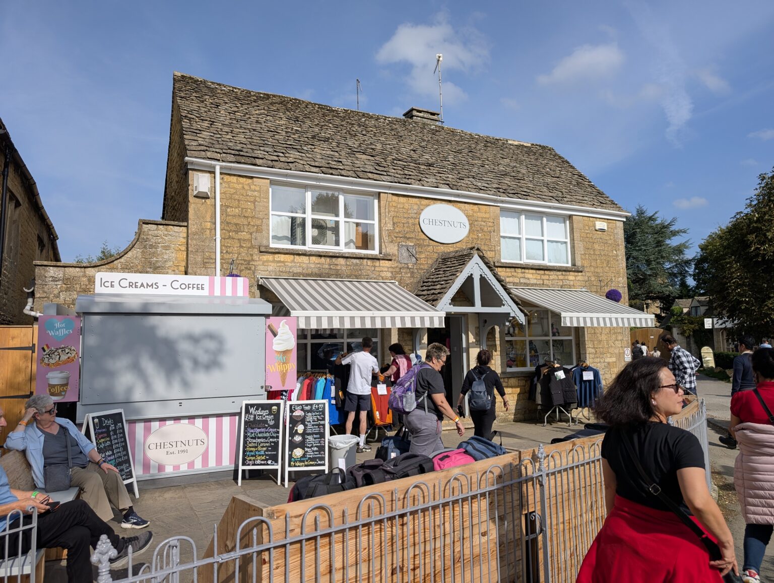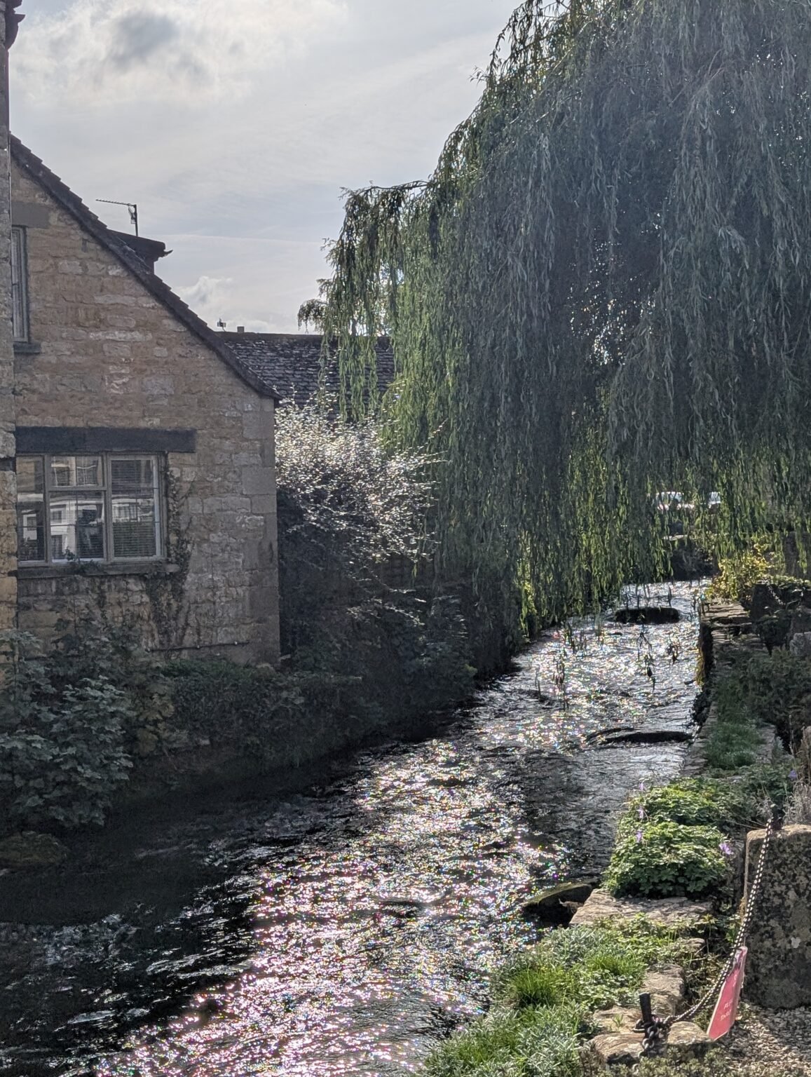 It was almost as if we were in a Theme Park . There was Windrush River running along the village and there were pretty little shops and gardens with benches to sit all around. There were pretty little stone bridges in places to cross the stream. Even though it was a Friday, the place seemed very busy.
